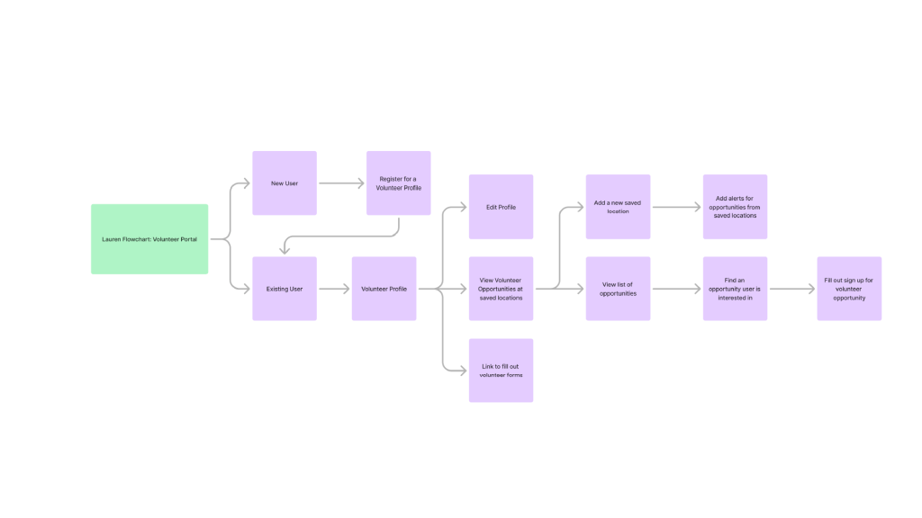 This page provides the user with a personalized landing page. It will be a place to create an account for easy sign up with participating organizations. Additionally, this page will give the user a location to save specific locations or organizations of their choosing and allow them to quickly sign up for volunteer opportunities with these saved places. In creating an account any necessary registration paperwork will also be linked here. Finally, this location will show the user events they are registered for.