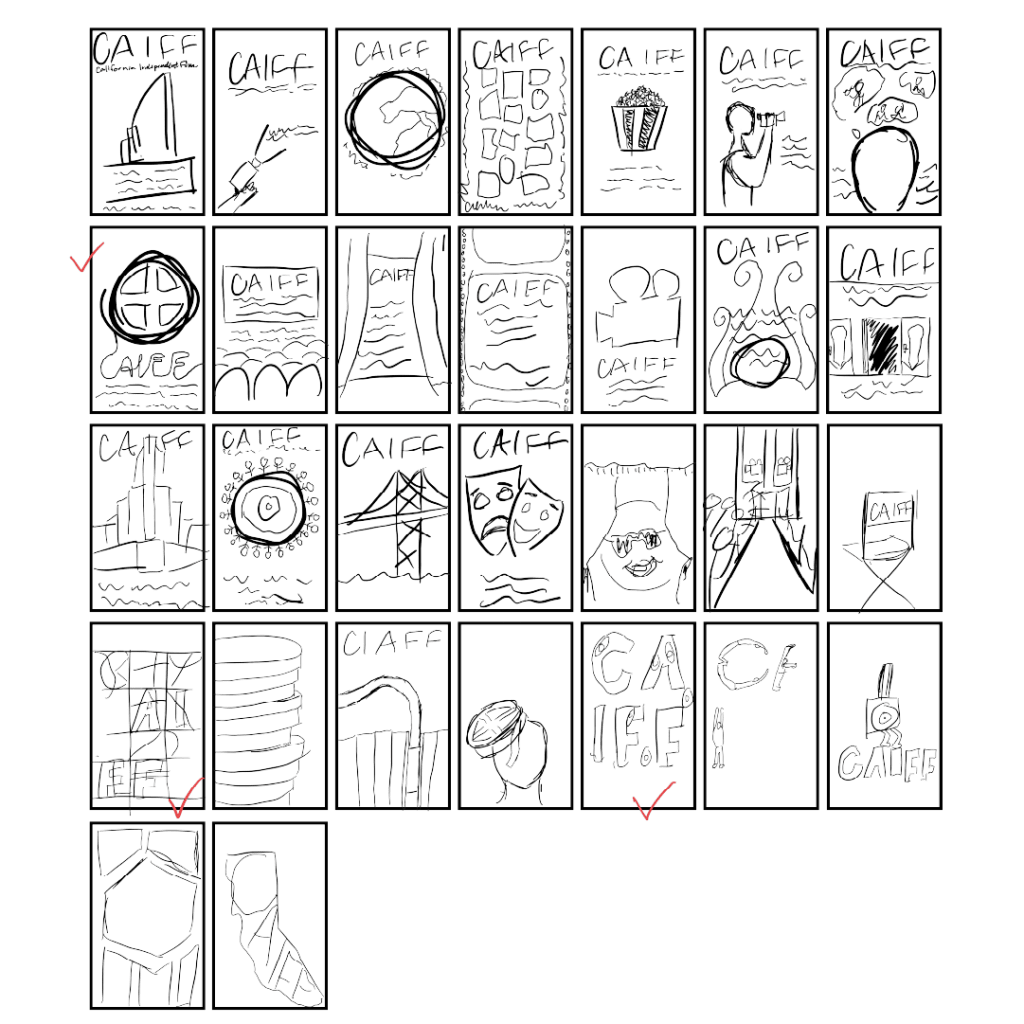 I chose the California Independent Film Festival from a given list of conferences and festivals. After choosing this festival I created a mind map of potential imagery. I then researched past posters from this event and other similar events. From this research I began my thumbnail sketches.